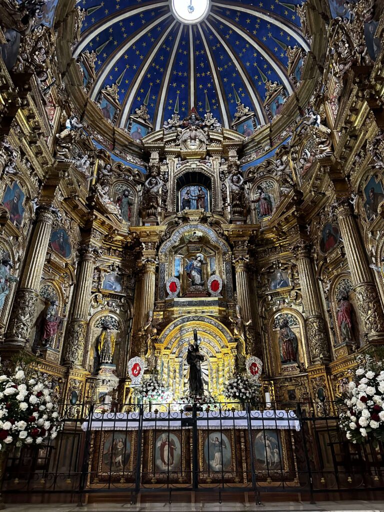 The Quito Metropolitan Cathedral houses many religious artworks, but what stood out to me most was the tomb of Mariscal Sucre, the famous Latin American independence leader. Our tour guide mentioned that Sucre wished to be buried on the Pichincha Volcano, but instead, they buried him in a tomb made from rocks taken from Pichincha and displayed it in this cathedral.