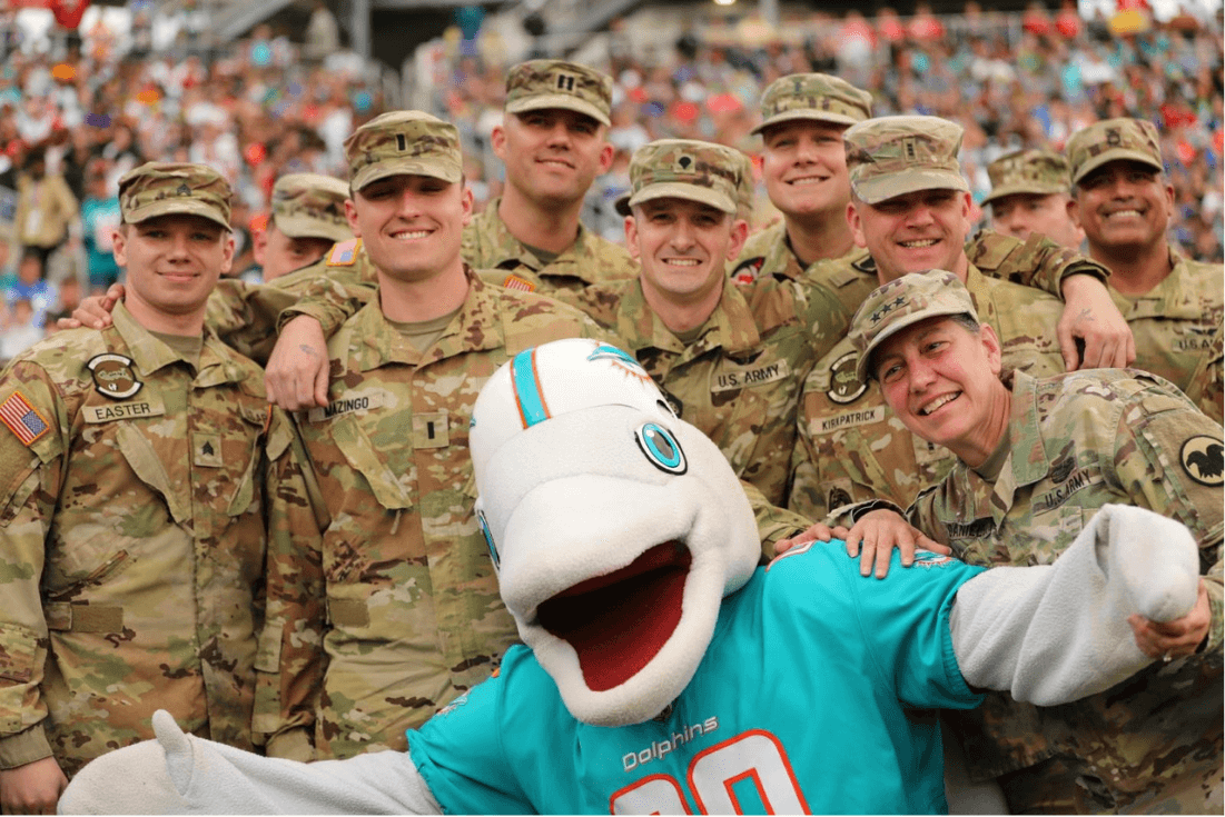 T.D. is not just a local hero—he’s a mascot with global recognition. He has earned the title of an 11-time Pro Bowl mascot, showcasing his popularity and impact within the NFL. T.D.’s performances have taken him worldwide, including appearances at the Chinese New Year’s Day Parade in Hong Kong and as the first mascot to participate in the Hall of Fame Game in Canton, Ohio. Additionally, T.D. has shown his support for American troops by traveling overseas on five military tours, bringing the Dolphins’ spirit to servicemen and women abroad.